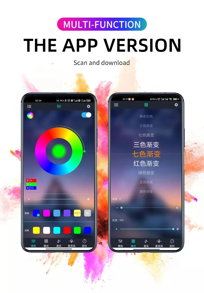 72LED Cigar APP / USB APP: potência máxima, brilho intenso e resposta rápida. Controle total via app, com sincronização musical e modos dinâmicos.